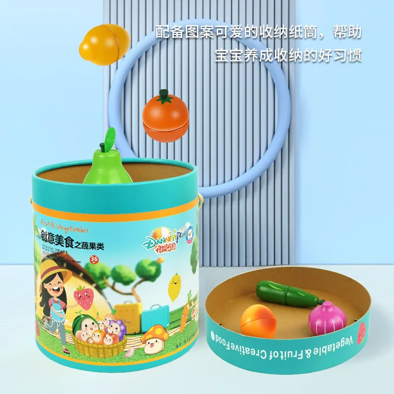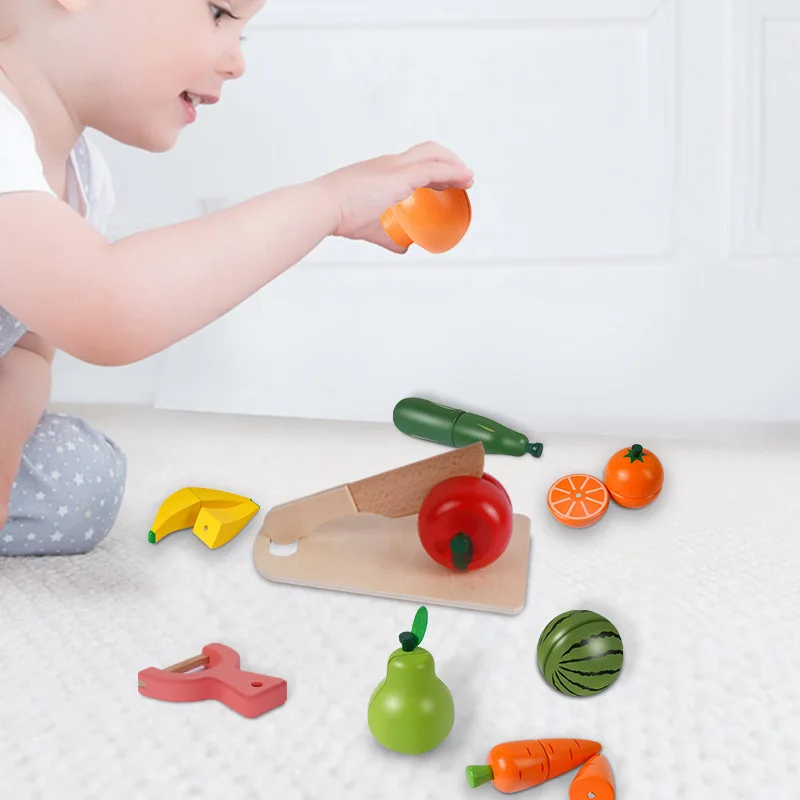 Imaginative Play Kitchen Set 3D Magnetic Cut Fruit and Vegetable Wood Playing House for Children